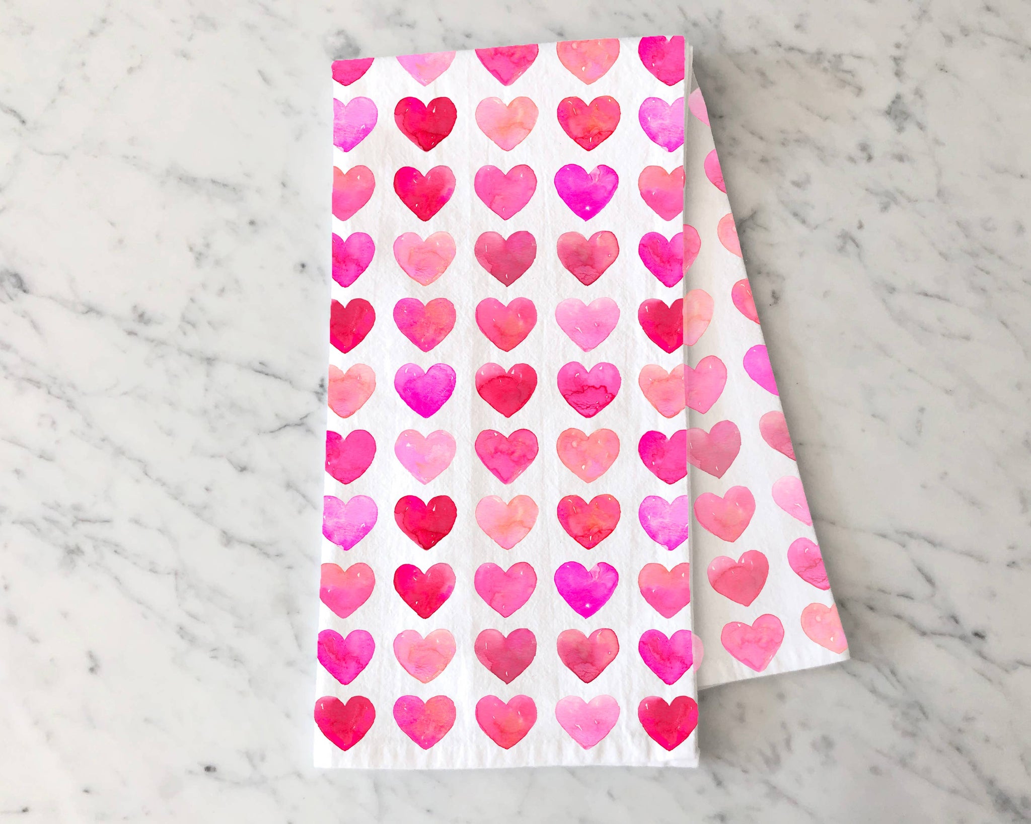 Watercolor Valentines Hearts Tea Towel Perfect for the kitchen or bar for