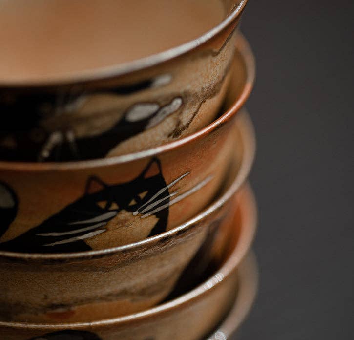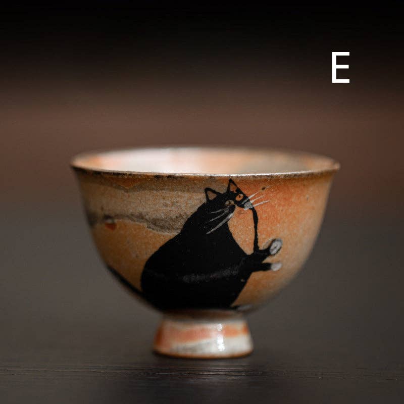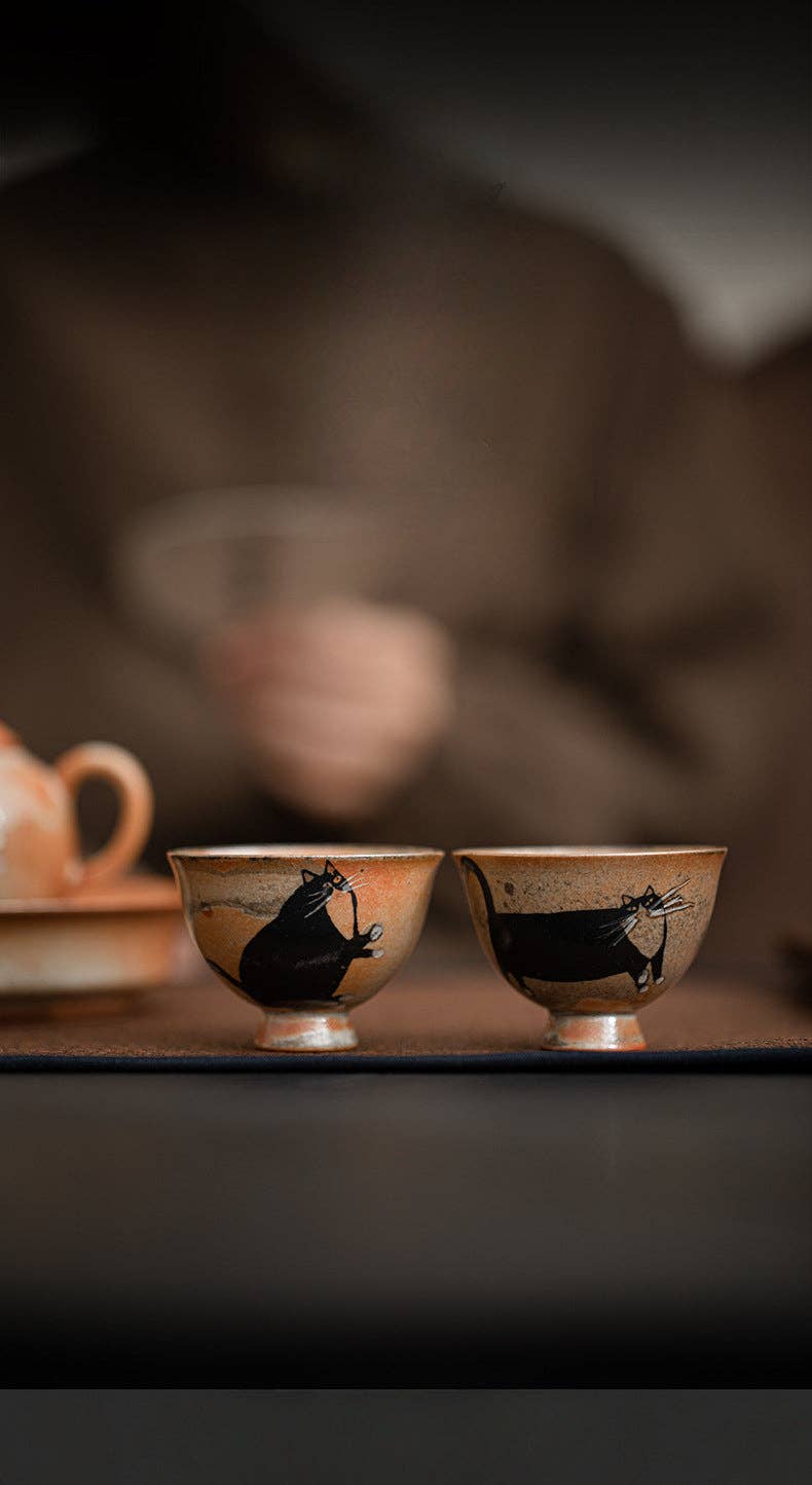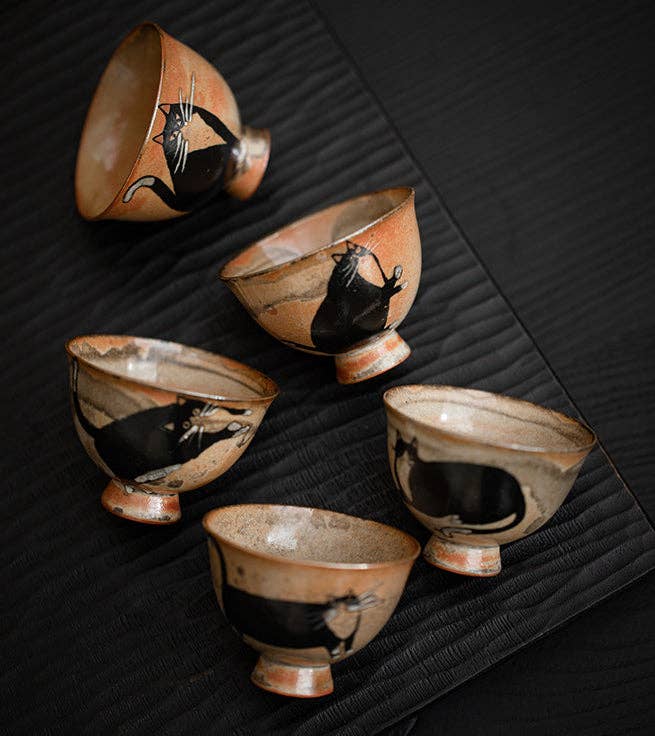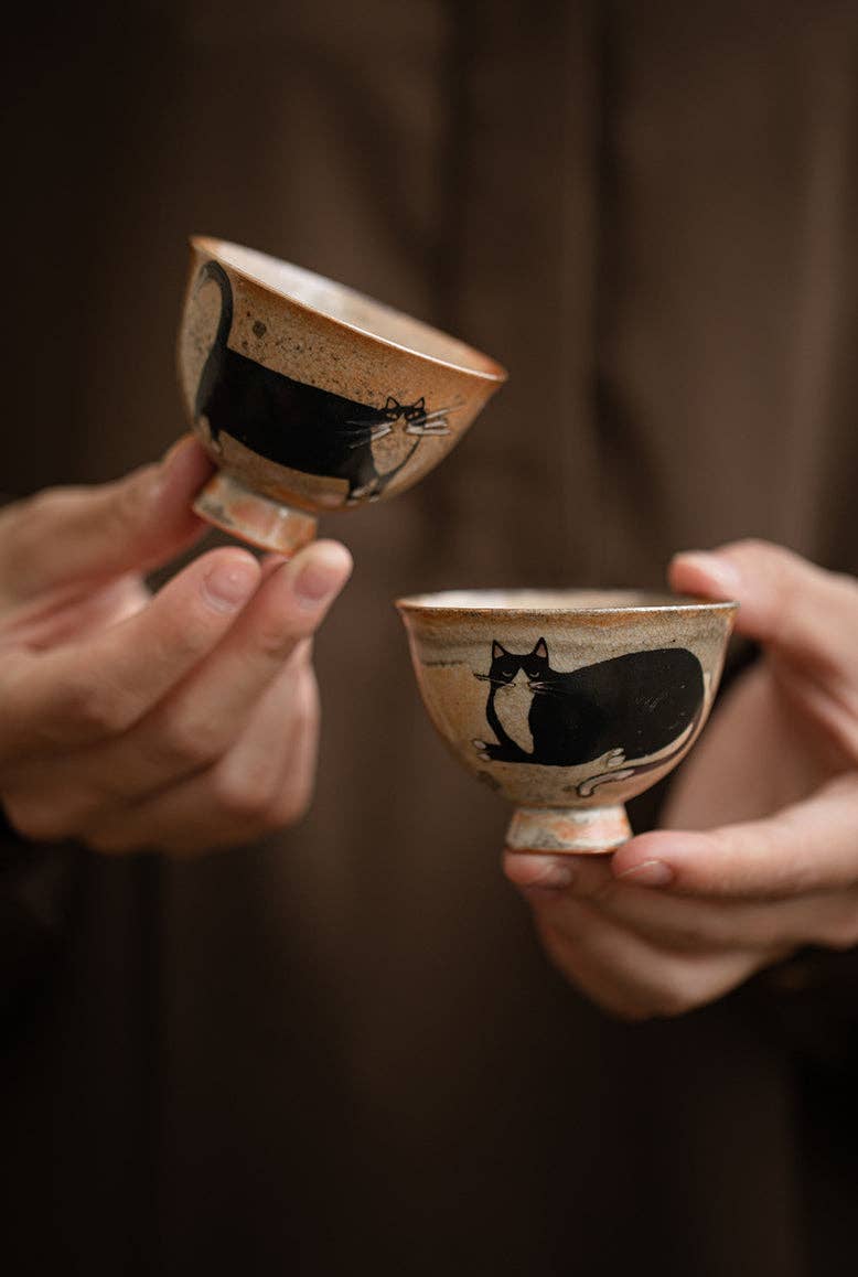 Gohobi Handmade Black Ink Hand-painted Cat Tea Cup
