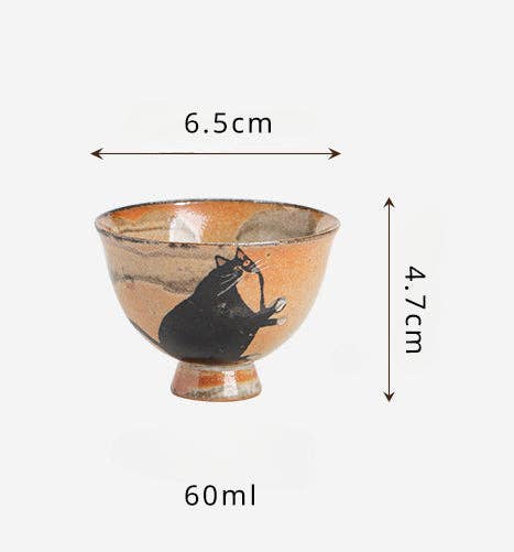 Indulge in the beauty and elegance of the Gohobi Handmade Black Ink Cat Tea Cup. Crafted with traditional Japanese techniques, this light luxury ceramic cup features a hand-painted cat design that brings a touch of retro charm to your tea ritual. The perfect size for a single cup of tea, it allows you to fully experience the rich flavors while adding a touch of sophistication to your home. The dimensions of this handcrafted tea cup are 6.5 cm in diameter and 4.7 cm in height, with a capacity of 60ml. As these are hand-crafted, slight variations may exist between pieces.